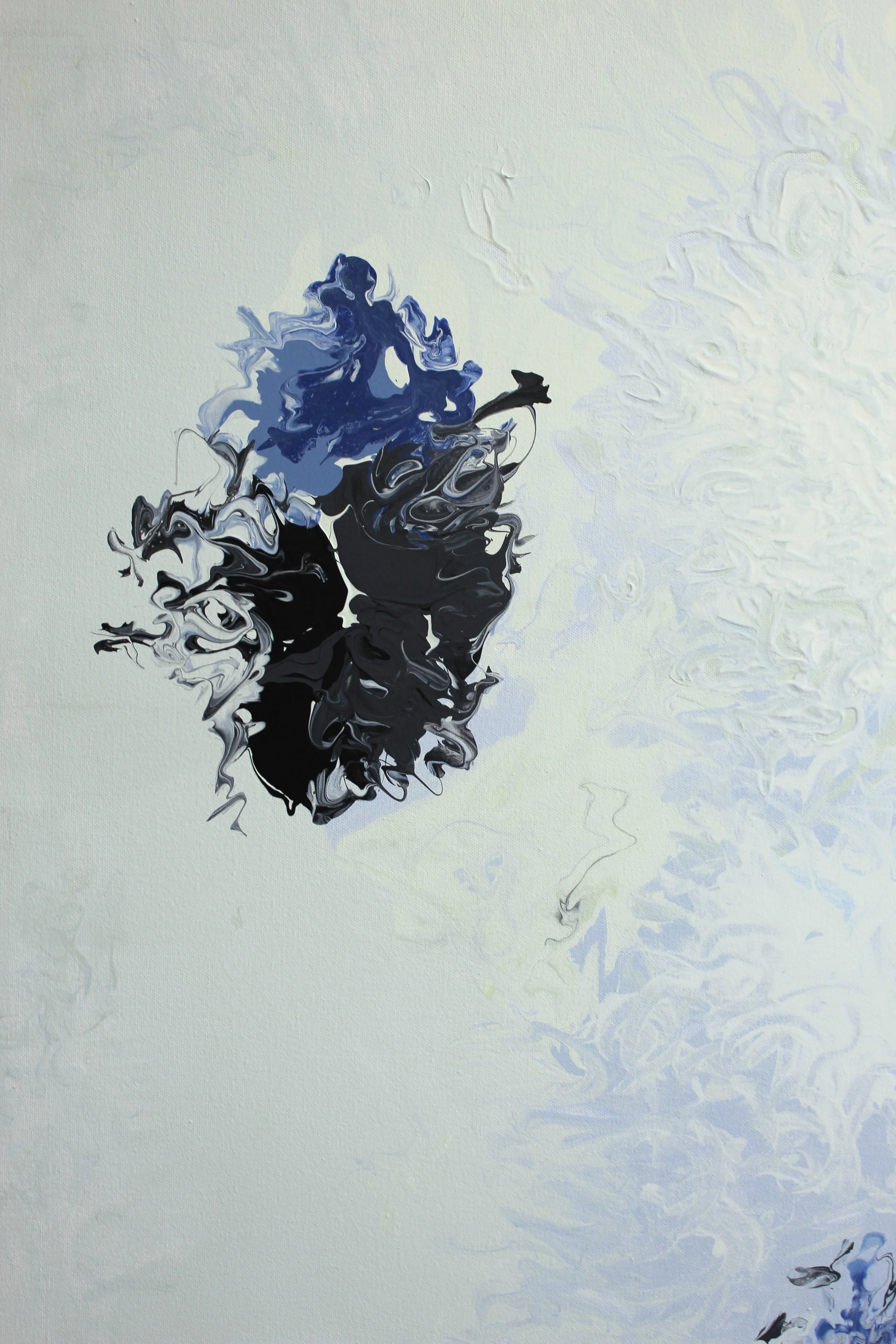 Midsummer Reverie invites viewers into a captivating exploration of abstraction, where the boundaries of form and color meld into a symphony of spontaneity. Against a backdrop of serene sky blue, the canvas pulsates with dynamic energy, as masses of dark and light blue, black, and grey dance across the surface in a spirited cacophony of hues. Each brushstroke, imbued with a sense of whimsy, intertwines with its neighbors, creating a tapestry of intricate patterns and textures. With every viewing, Midsummer Reverie invites contemplation, prompting viewers to discover serenity within the unpredictable rhythms of life.